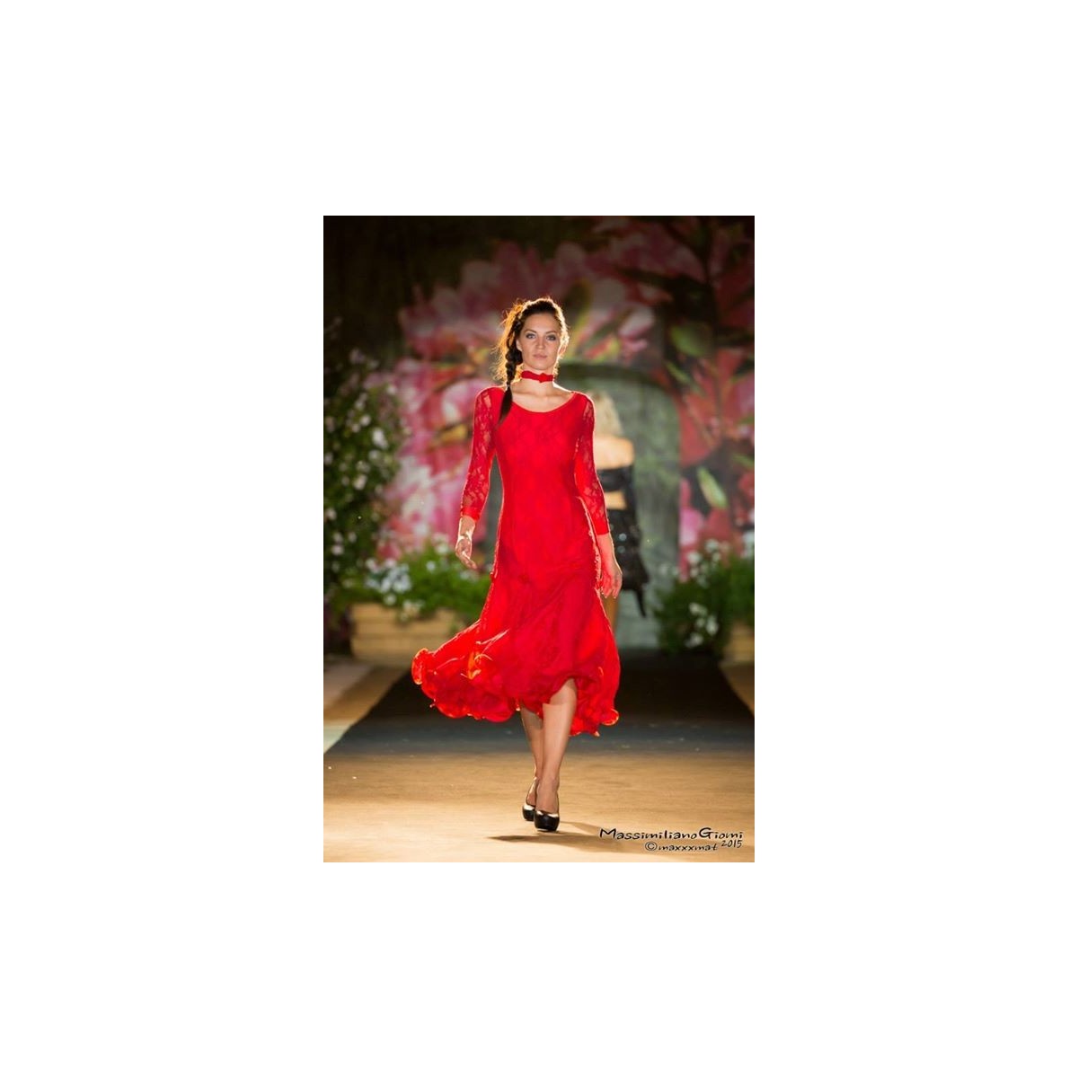 On the tips of gore are applied roses in satin that we find on the coordinated collar lace dress.
