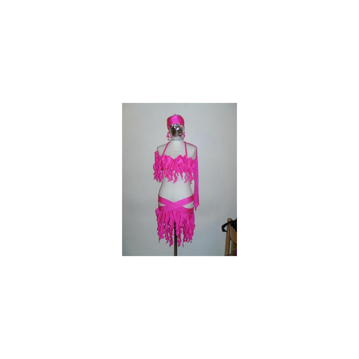 Dress created for the Caribbean and Latin dances. Made of lycra fluorescent fuchsia, it owes its peculiarity to the soft ruffles scattered on the bodice and skirt.