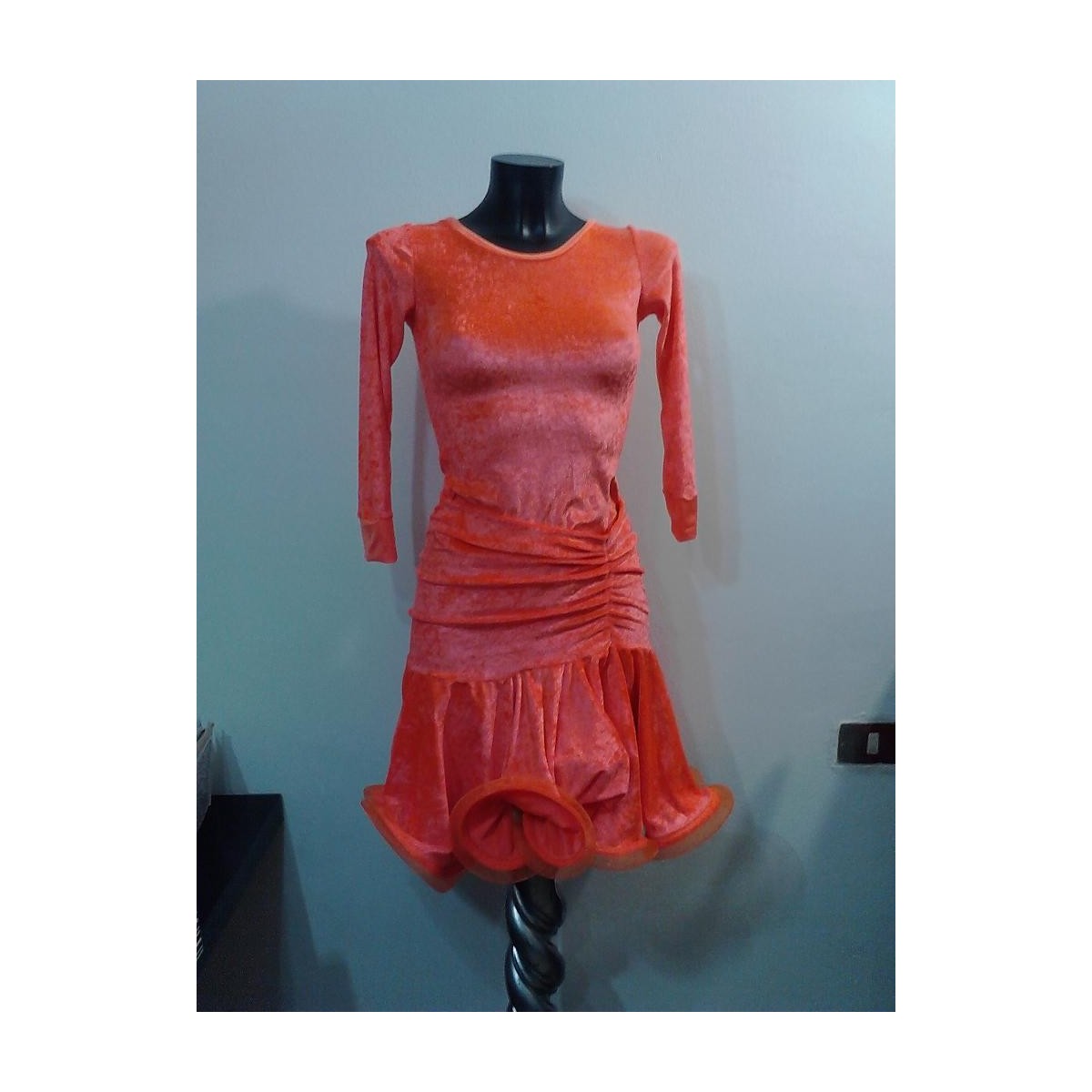 Divisa per danze latine categoria B 3. Realizzata in ciniglia e lycra. Si compone di body con maniche e scollo bordati di lycra.