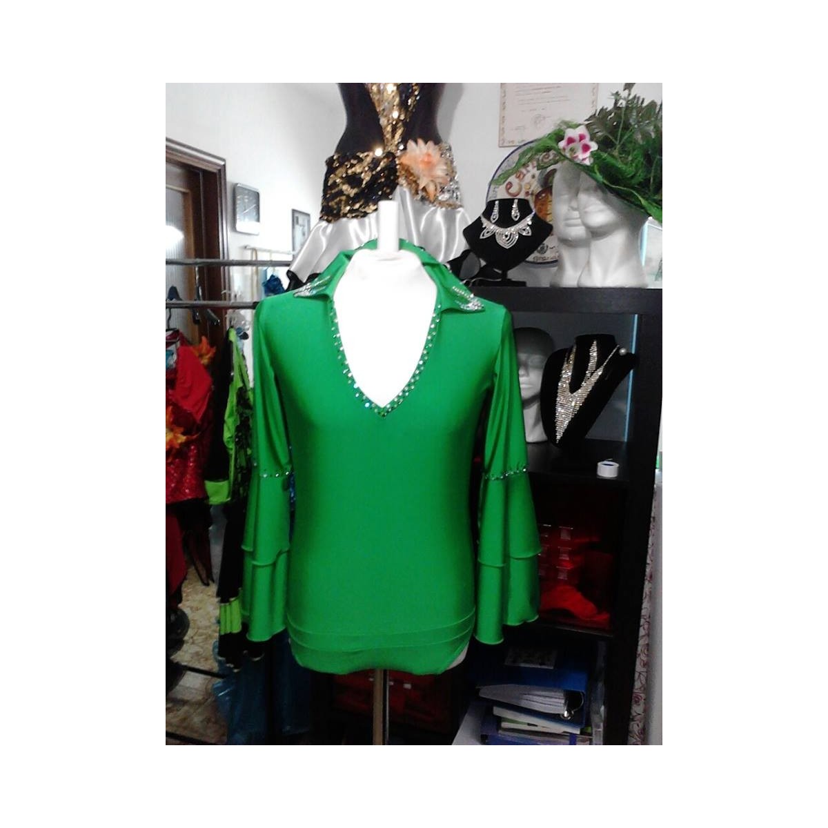 Camicia per danze caraibiche. Realizzata in lycra e decorata con strass.