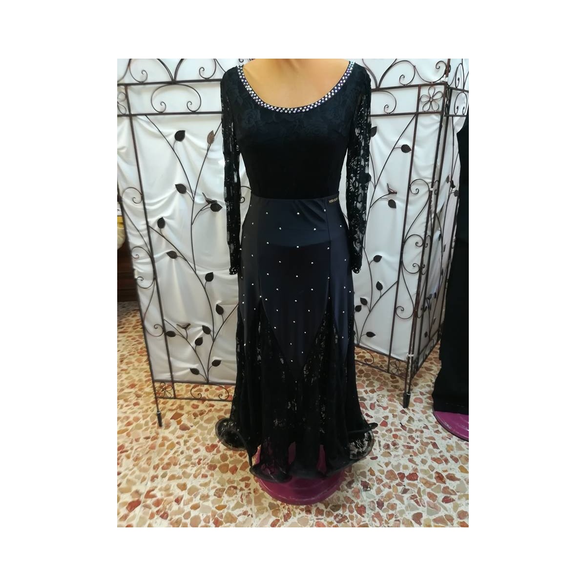 Body con scollo a barca e gonna con teli e godet in pizzo.