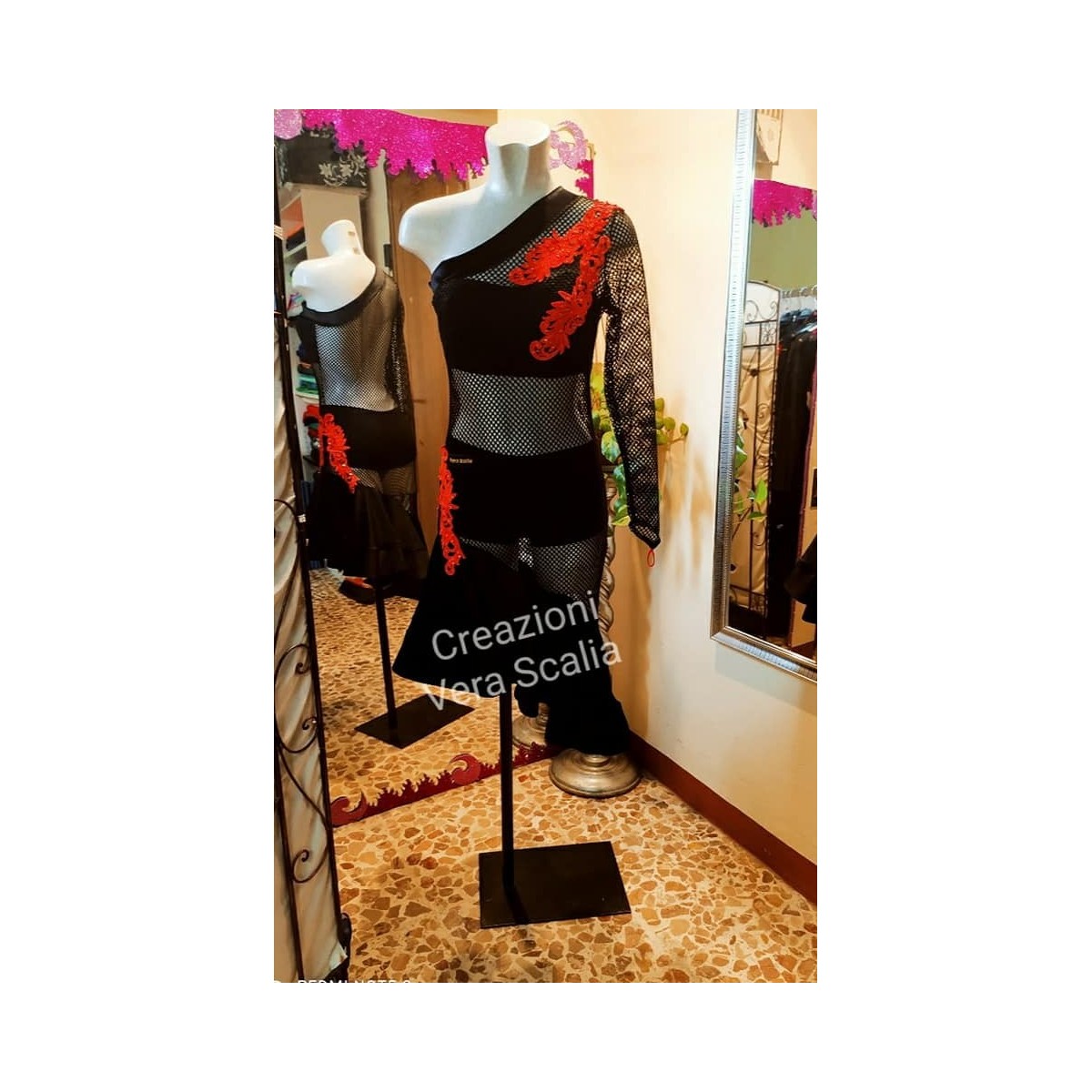 Corpino monospalla con mnica e gonna asimettricaa a doppia ruota.